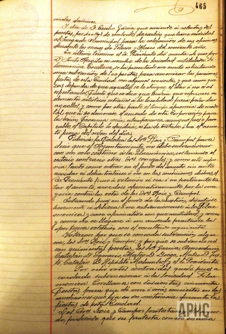 – Por las consideraciones recogidas en acta, se acuerda conceder una subvención de 250 pesetas a “Filarmónica Corellana”, para uno o más conciertos en las próximas fiestas patronales.