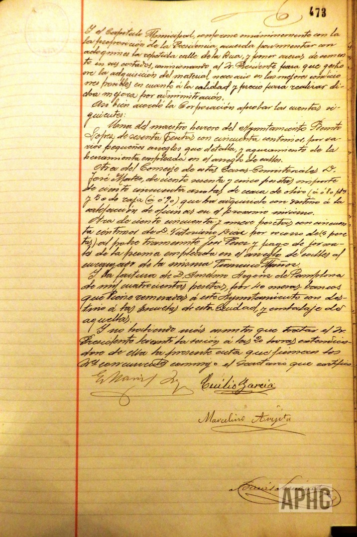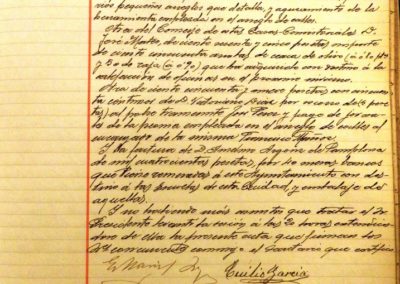 – Entre otras, se cita una factura de Anselmo Argonz, de Pamplona, por compra de 40 mesas-bancos, con destino a las Escuelas Municipales y por importe de 1.400 pesetas.