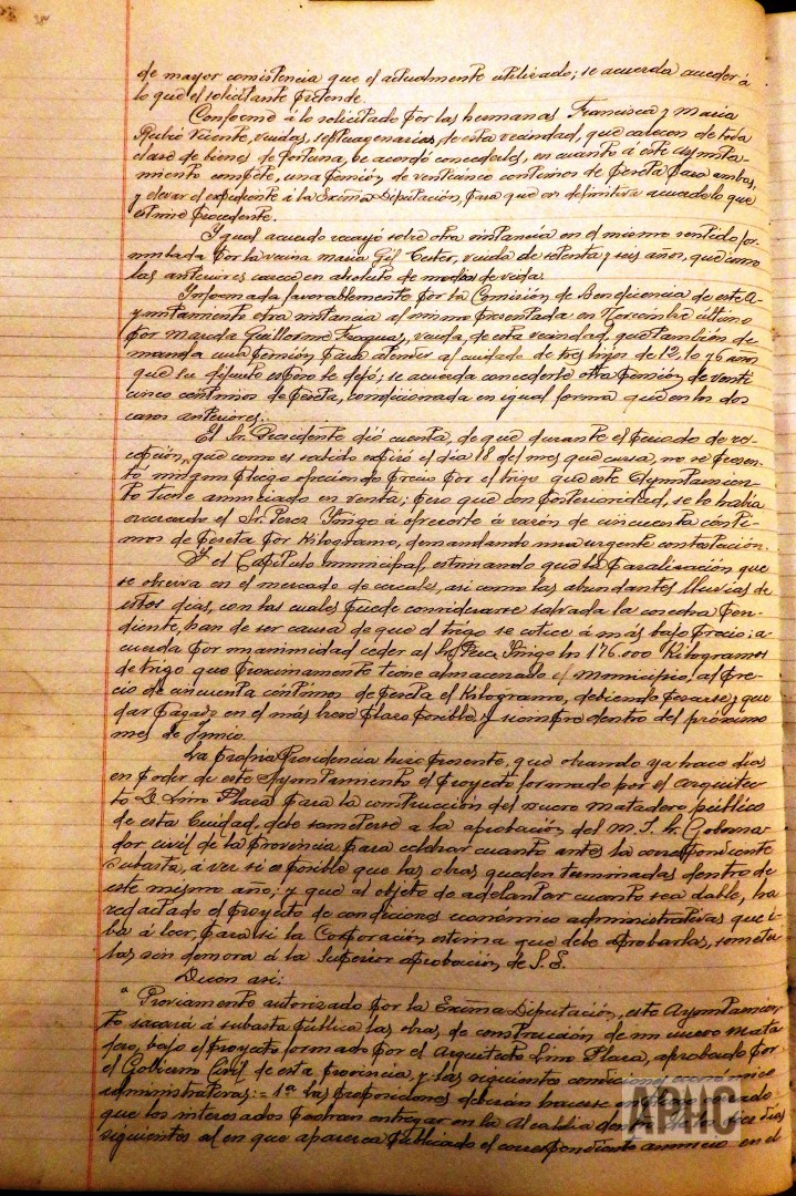 – Se informa de la aprobación de la Diputación del proyecto del arquitecto Lino Plaza, para construcción de un nuevo matadero público, se aprueba el condicionado económico administrativo y se acuerda someterlo a la aprobación de la Diputación Provincial, para sacarlo a subasta pública.