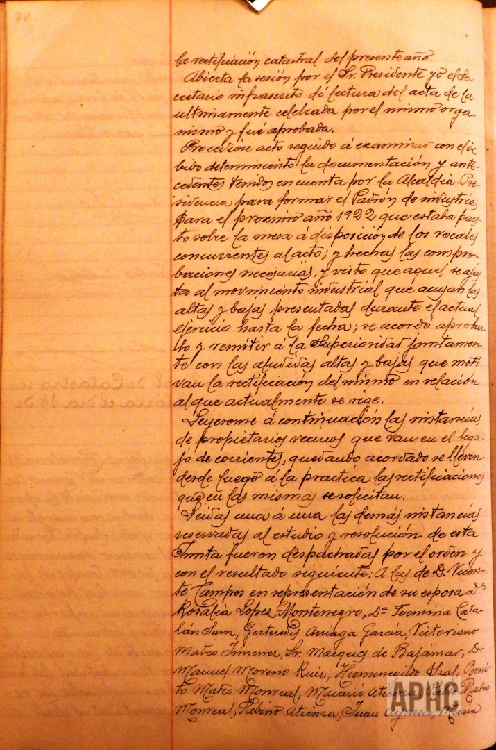– Revisado el Padrón Industrial para el año 1922, presentado por la Alcaldía, se acordó su aprobación y remisión a la Superioridad, junto a las altas y bajas que han motivado su rectificación.