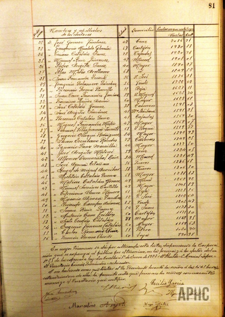 – De conformidad con las disposiciones vigentes, se procede a la formación de las listas de vecinos que pueden elegir compromisarios para elección de Senadores, quedando constituida por los 14 componentes de Ayuntamiento y 56 Mayores contribuyentes. Se acuerda que dichas listas sean expuestas al público hasta el día 20 del corriente mes y que las reclamaciones oportunas se deben realizar en el Ayuntamiento.