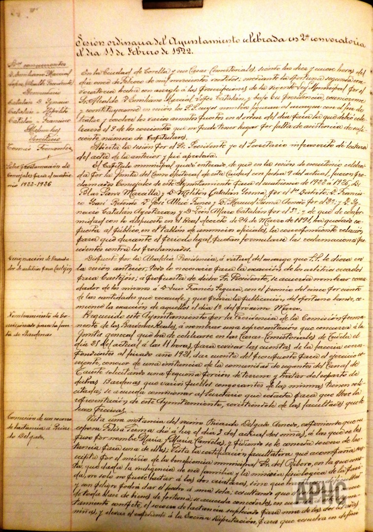 – Se nombra a Luis Francés Segura, recaudador de los arbitrios exigibles en el barrio de Castejón, al que se concederá un premio del 5 por ciento de las cantidades recaudadas.