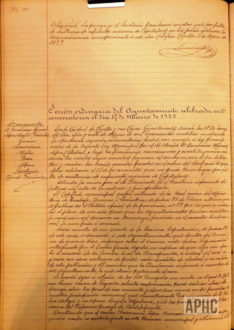 – Entre otras, se aprobó el pago de una factura de la Casa “Trúgmer”, de 25,10 pesetas por una caja de papel carbón (100 hojas), para la máquina de escribir.