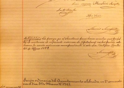 – Recibida solicitud del Reverendo Padre Rector de los PP. Pasionistas, de ayuda para refundir una de las dos campanas que se había roto, se acuerda contribuir con 75 pesetas.