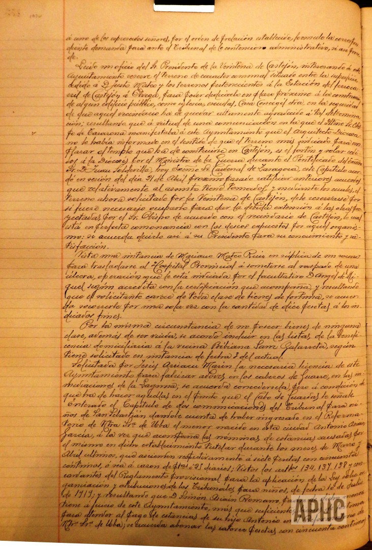 – Se recibe comunicación del Presidente de la Veintena de Castejón, sobre terrenos para edificar una iglesia.
