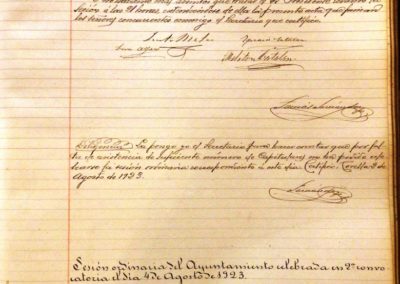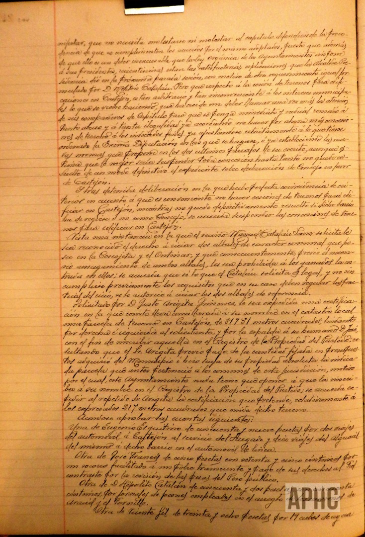 – Se trata e informa sobre concesión de terrenos para edificaciones en el barrio de Castejón y después de varias deliberaciones, se acuerda no realizar cesión alguna hasta tanto no se determine sobre la formación de un Concejo, según ordena Diputación.