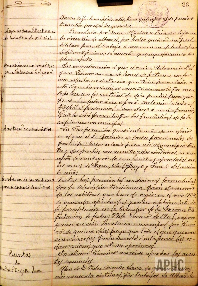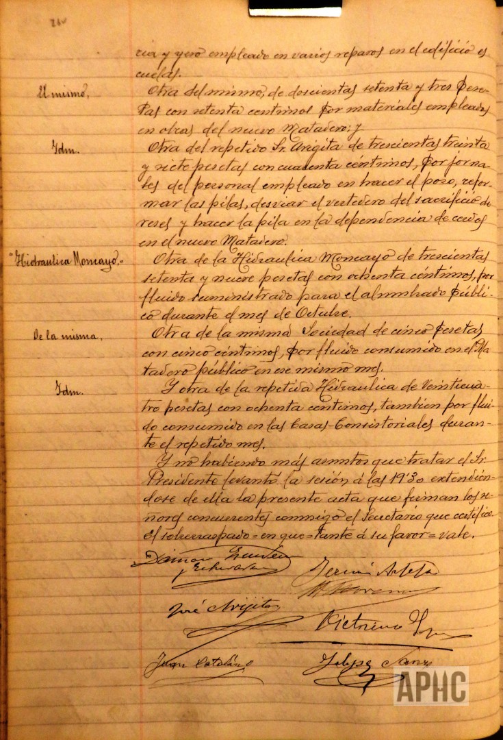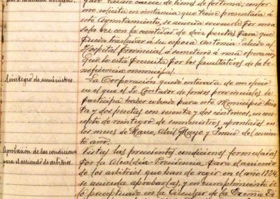 – Entre otras, se aprueba una factura de Pedro Arigita Sanz, por apertura de un nuevo pozo y varias reformas en el nuevo matadero municipal.