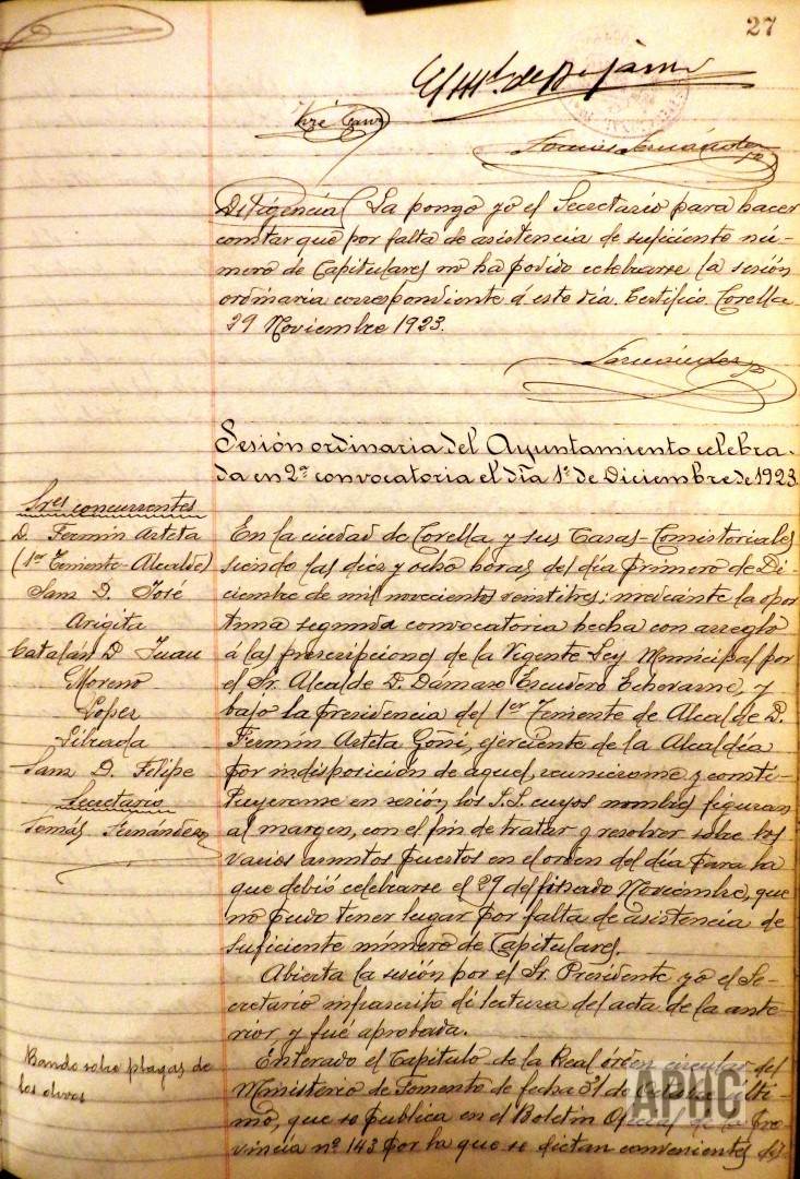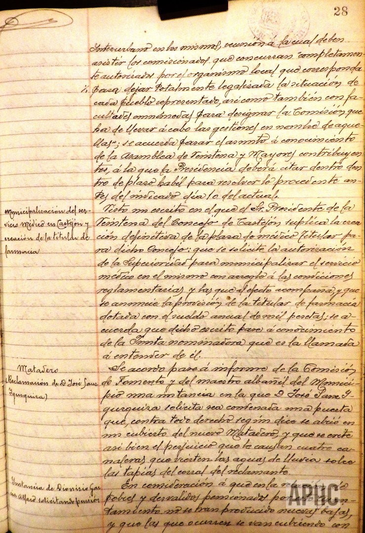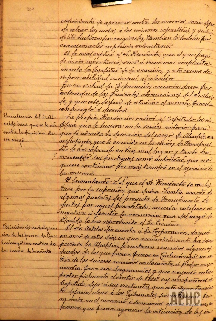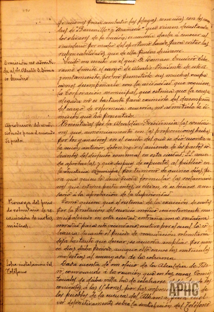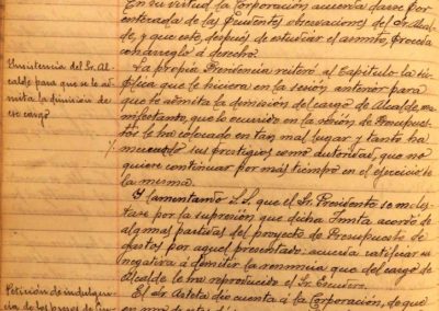 – Presentado escrito de Dámaso Escudero Echevarne, solicitando su renuncia a su cargo de Alcalde, alegando que sus muchas ocupaciones no le permiten desempeñarlo con la asiduidad que requiere, se acuerda no admitir dicha renuncia, por estimar que la causa alegada no es motivo suficiente para admitir dicha renuncia.