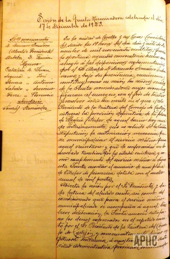 1923-12-17 – (Sobre Provisión Médico y Farmacéutico Barrio de Castejón)