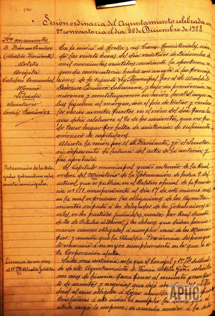 1923-12-22 – (Licencia Concejal. Subasta Arbitrios Municipales)
