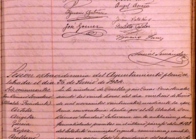 – A solicitud de Eugenio Salamero Resa, nombrado cabo del Somaten de la Ciudad, se accede a facilitar el salón de sesiones del Ayuntamiento, para reuniones en determinadas circunstancias.