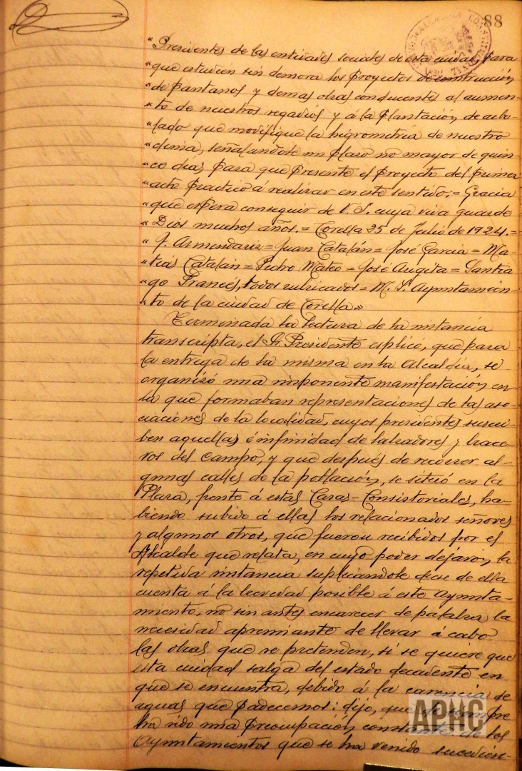 – Se informa de varios escritos de sociedades civiles de Corella, sobre necesidad de estudio de obras hidráulicas para incremento de aguas para la Ciudad.
