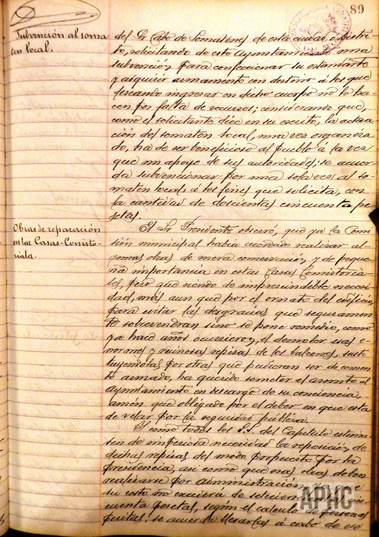 – Se acuerda realizar obras en la Casa Consistorial, para consolidación de las repisas de los balcones.