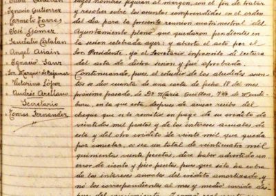 – Se informa de carta de María Guillén, viuda de Mendiburu, acusando recibo del importe de 22.000 pesetas más intereses, correspondientes a la cancelación de uno de los dos préstamos concedidos a este Ayuntamiento, en su momento, quedando pendiente el segundo por importe de 20.000 pesetas.