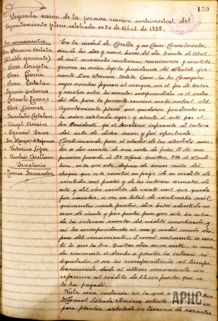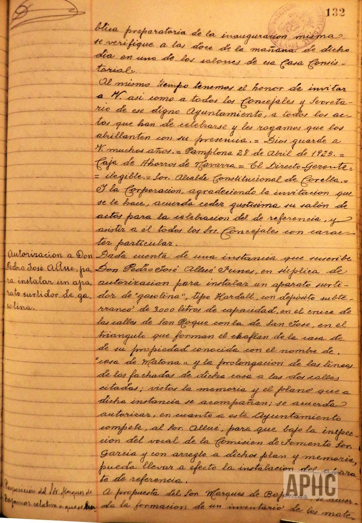 1925-04-30 – (Cancelación Préstamo Municipal. Trabajo para Obras Municipales. Inauguración Sucursal Caja Ahorros de Navarra. Instalación Surtidor Gasolina)