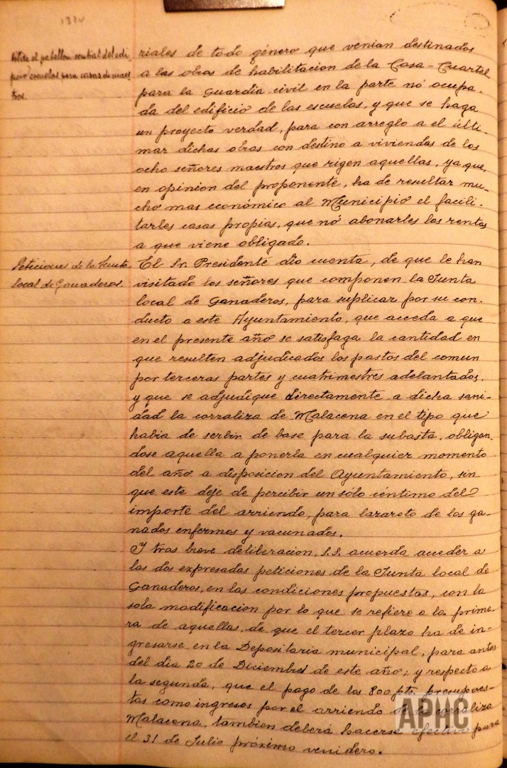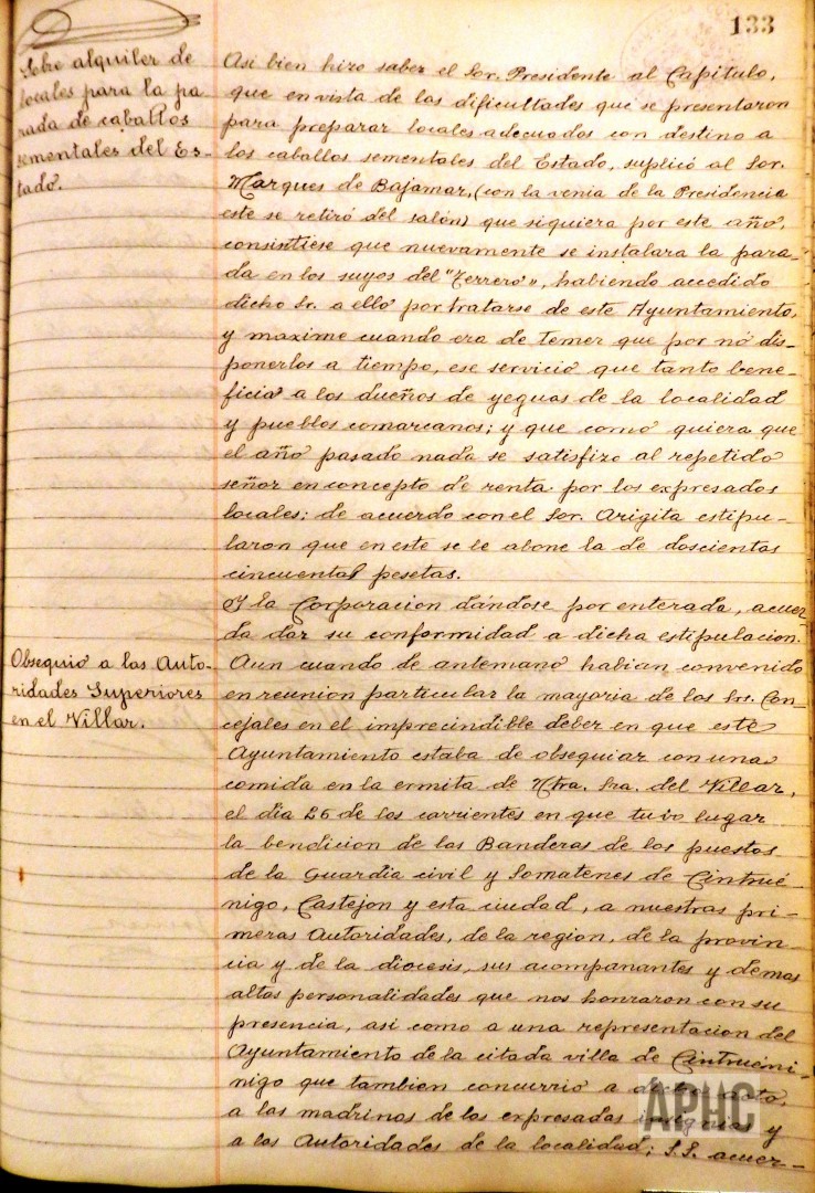 – Se acuerda que, por la cesión de locales en el “Terrero”, del Marqués de Bajamar, para instalar la parada de caballos sementales del Estado, en el presente año, se abone la cantidad de 250 pesetas.