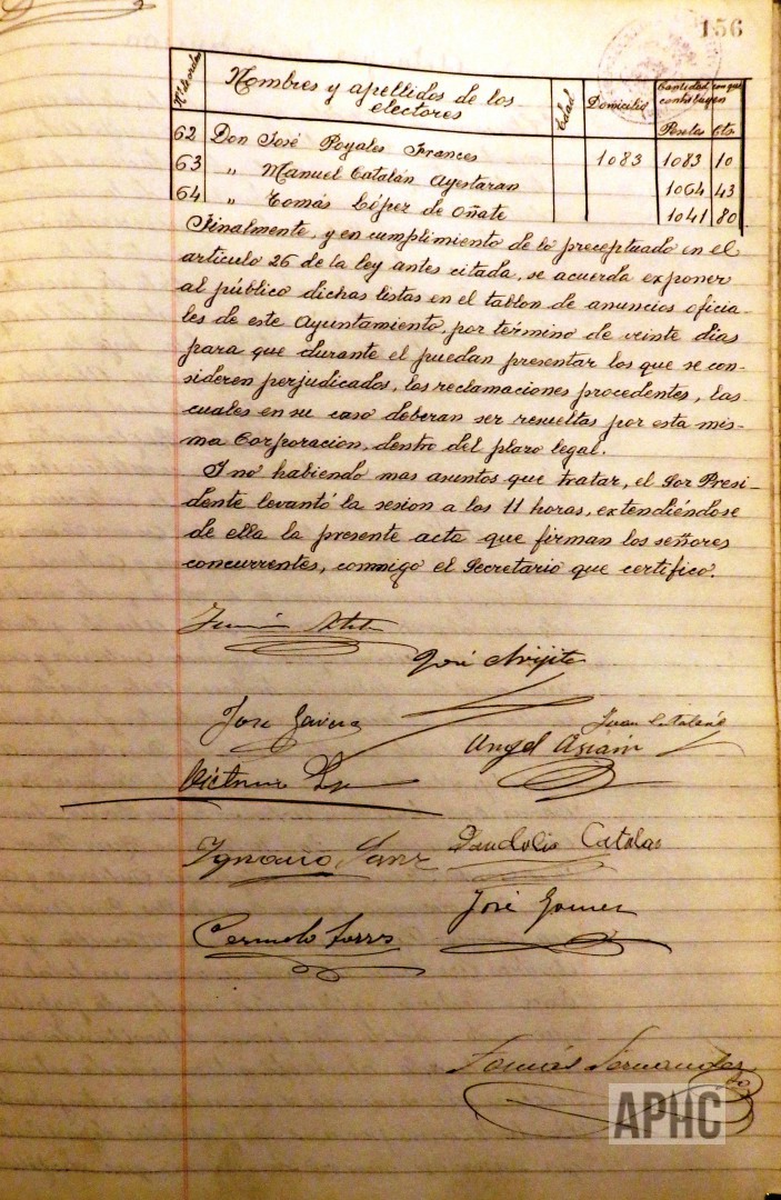 – De conformidad con lo dispuesto en la Ley Electoral y en su cumplimiento, se procedió a la formación de la lista de compromisarios para elección de Senadores, quedando constituida por los 16 componentes de Ayuntamiento y 64 Mayores contribuyentes. Se acuerda que dichas listas sean expuestas al público por un plazo de 20 días para que los que se consideren perjudicados presenten las reclamaciones oportunas que deberán ser resueltas por este Ayuntamiento.