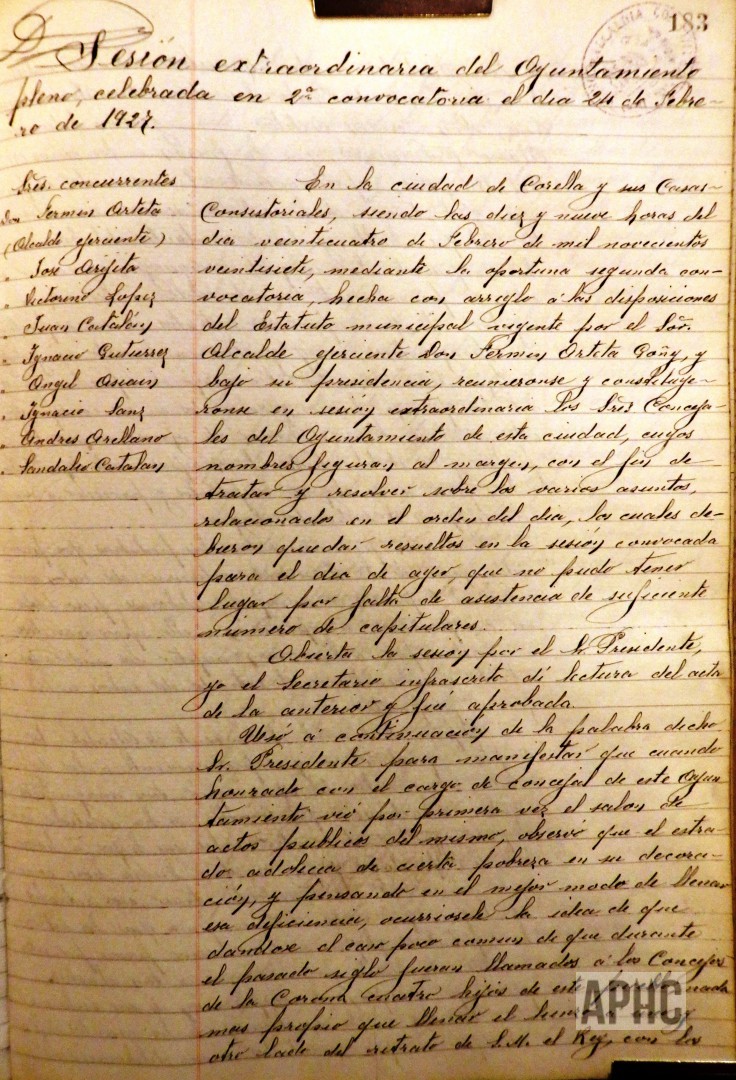 1927-02-24 – (Colocación Retratos Salón Sesiones)