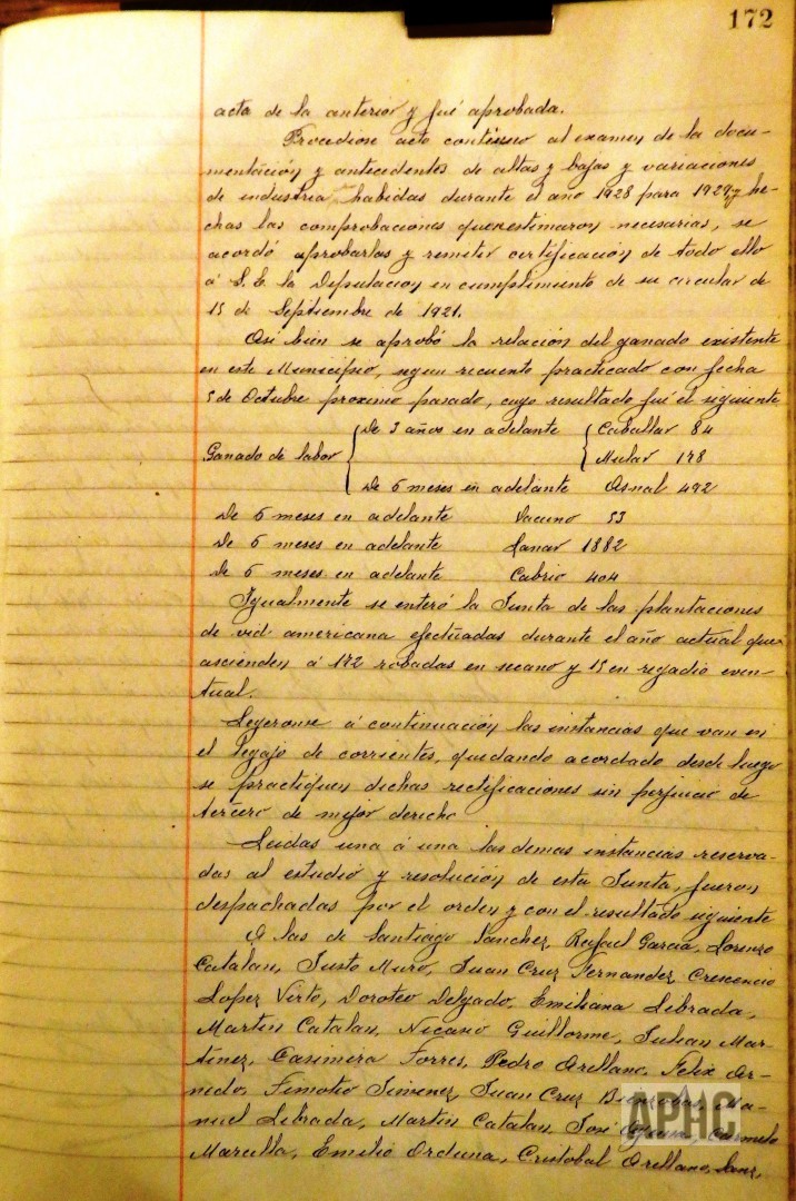 – En sesión de Junta Local de Catastro se expresa una relación de ganado existente y se indica: Ganado de Labor, de 3 años en adelante, caballar 84, Mular 178. De 6 meses en adelante Asnal 492. Ganado de granja: de 6 meses en adelante, vacuno 53, lanar 1.882, cabrío 404.
