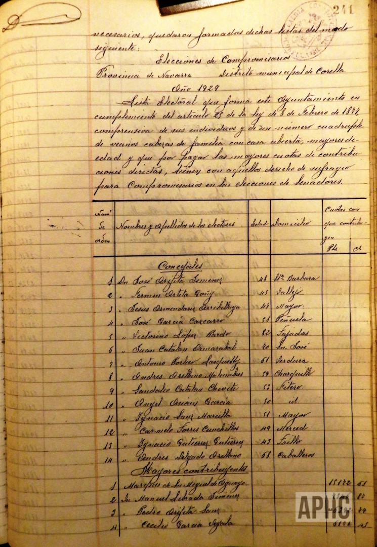 – De conformidad con lo dispuesto en la Ley Electoral y en su cumplimiento, se procedió a la formación de la lista de compromisarios para elección de Senadores, quedando constituida por los 14 componentes de Ayuntamiento y 56 Mayores contribuyentes. Se acuerda que dichas listas sean expuestas al público por el plazo reglamentario.
