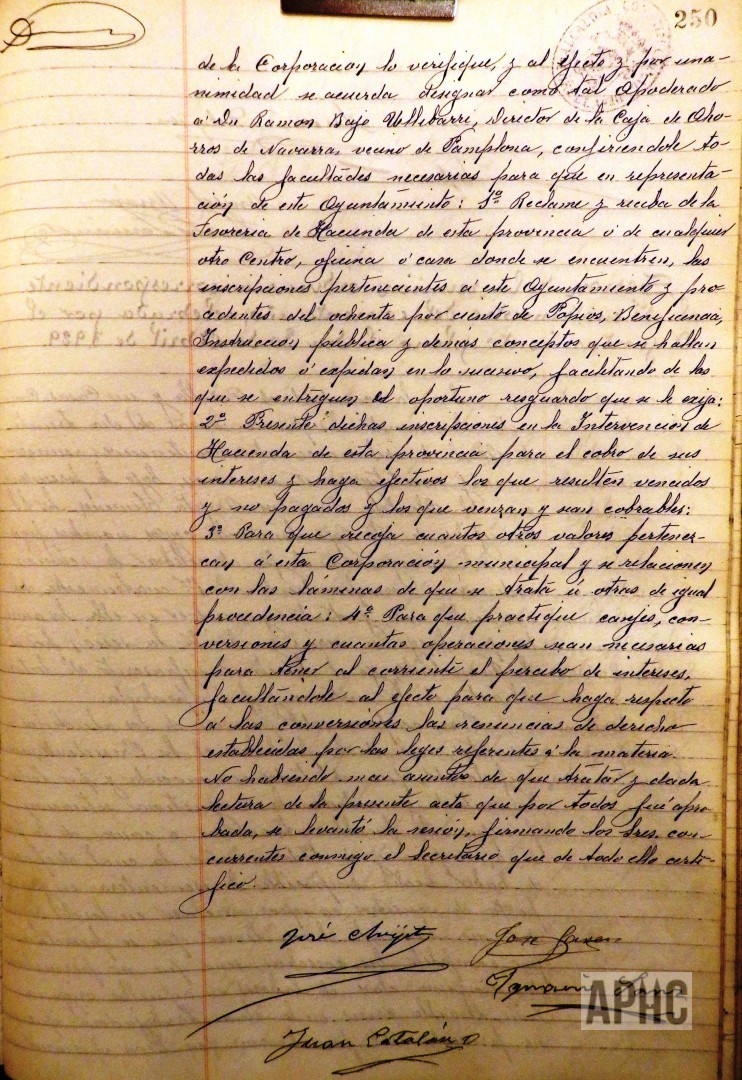 – Se acuerda designar como apoderado para gestión y cobro en la Tesorería de Hacienda, de los intereses de la Deuda a favor de este Ayuntamiento, a Ramón Bajo Ullibarri, Director de la Caja de Ahorros de Navarra y vecino de Pamplona.