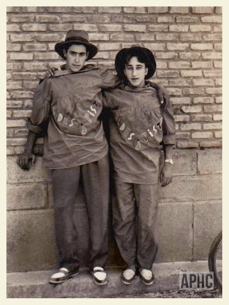 0000-00-00 – Antonio Calvo Delgado “Fortega” y Javier Manero Ramos “Masitas” con blusas de la cuadrilla “El Despiste”.
