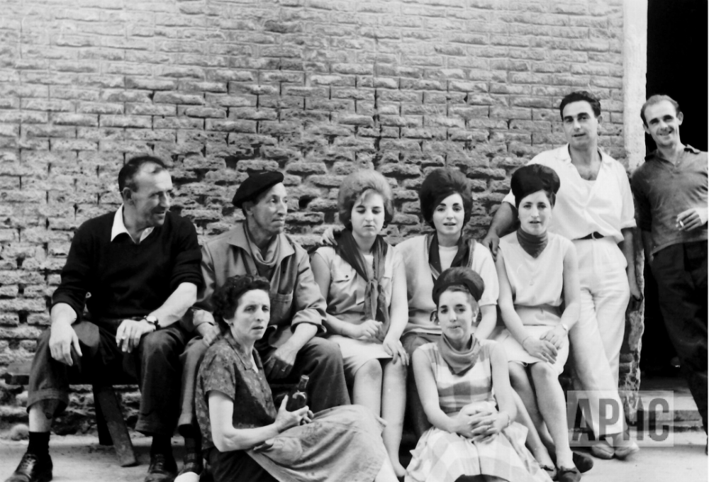 0000-00-00 – Antonio Monreal “Elena”, Vicente Barenas “Cuendas”, con su esposa Mª Cruz Baztán y sus hijas Teresa, XX y Mª José, Mari Morón, Javier López García “Colorao” y Andrés Sanz “Mindivi”