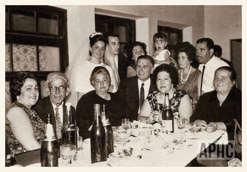 En la fila de abajo, por la izquierda, Rosario Arce; Elías Fernández; Petra Azcona; Genaro Sorrón; Alicia Arce y Ramona Bienzobas. Arriba, a la izquierda, los novios Delia Puente Monreal y José Luis Delgado Fernández; Tere Fernández Bienzobas, con su hija Ana Delia Martínez Fernández; Villar Sesma; y Rafael Fernández.