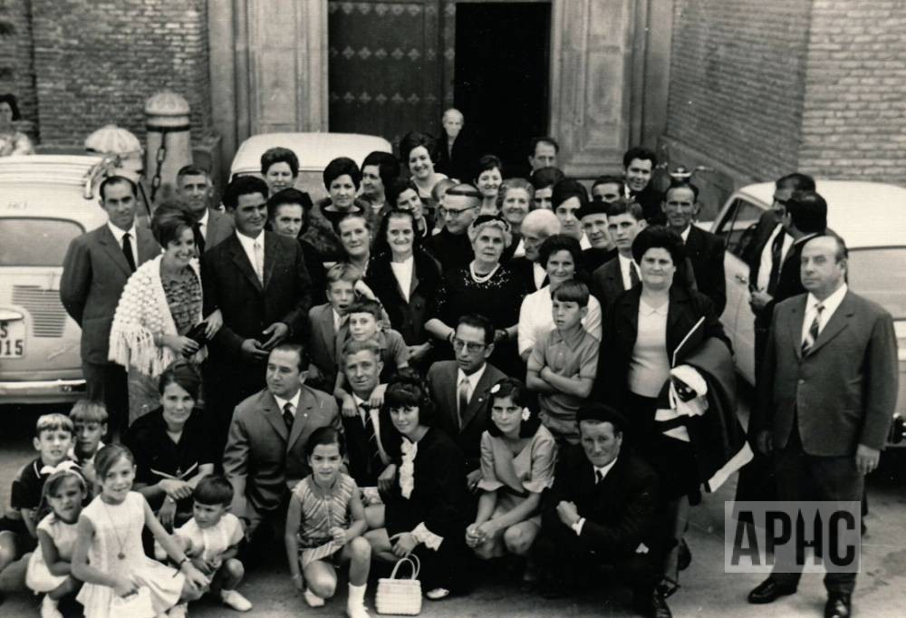 Primeras filas agachados, vemos a Asun Gil Rodríguez, X. García, Jesús Gil Catalán, José Mª Liroz Alfaro, José Luis (novio), su madre, quizás el hijo mayor que era religioso, su tía X. Gil, Agustina Rodríguez esposa de Emilio Gil (estaría en la sacristía con el libro de familia), detrás Rogelio y Miguel Virto Fernández y su esposa Felisa Simón García, y entre otras Tere Lázaro Marcilla “Zambombilla”.