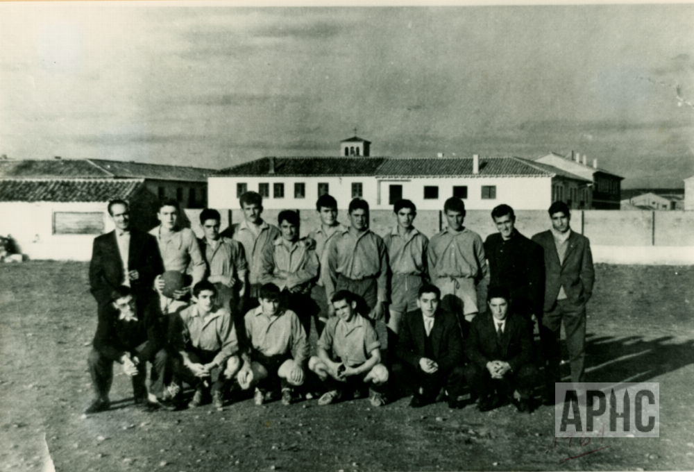 Agachados: José A. Ayala Jiménez “Chano”, Juan Jiménez Catalán “Moreno”, José Luis Echarri García, Quico Sanz, Javier Sanz Sáinz “Palotes” (Conductor), Eduardo Gómez Jiménez “Maca”.
