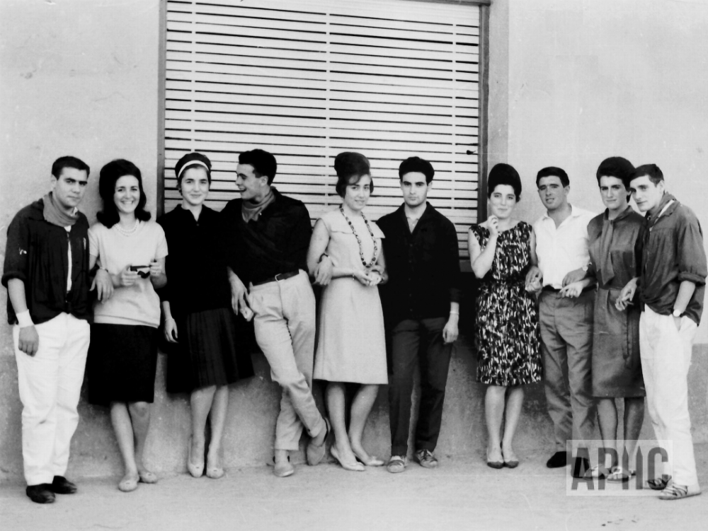 0000-00-00 – De izquierda a dcha.: Antonio Malumbres “Oño”, Mª Ángeles García Valcárcel, X. , Matías Sesma “Franco”, Merche Ochoa Igea “Cante”, José Sanz Martínez, Feli Moreno Sesma, Ángel Isla Rubio “Machillo”, X. y José Luis López “Peña”.