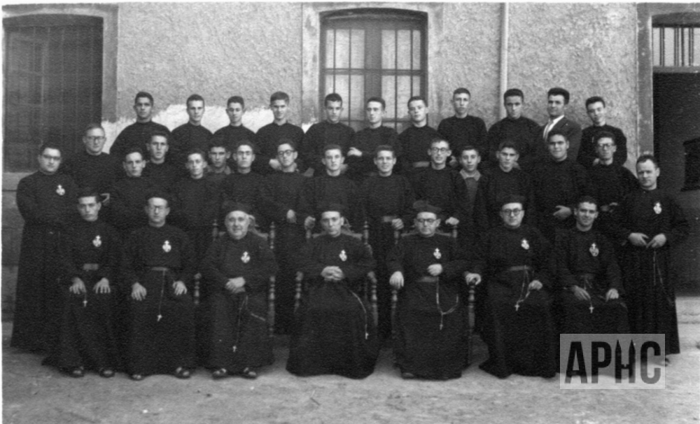 Parece que en la leyenda se indica “Los novicios a su Reina”.