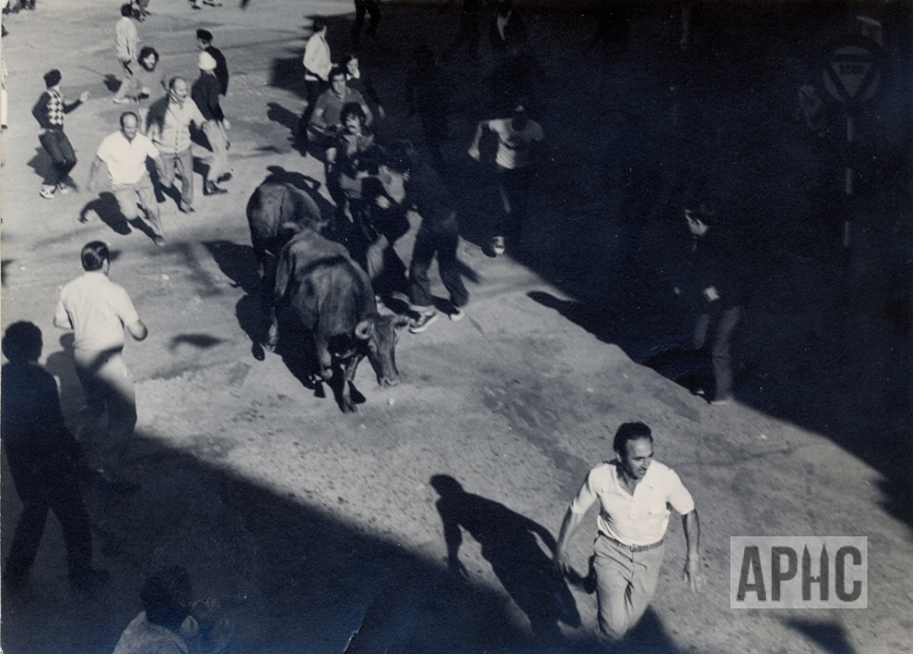 0000-00-00 – Encierro, las vacas enfilando la calle Mayor, delante Jesús Eraso “Ovejilla”.
