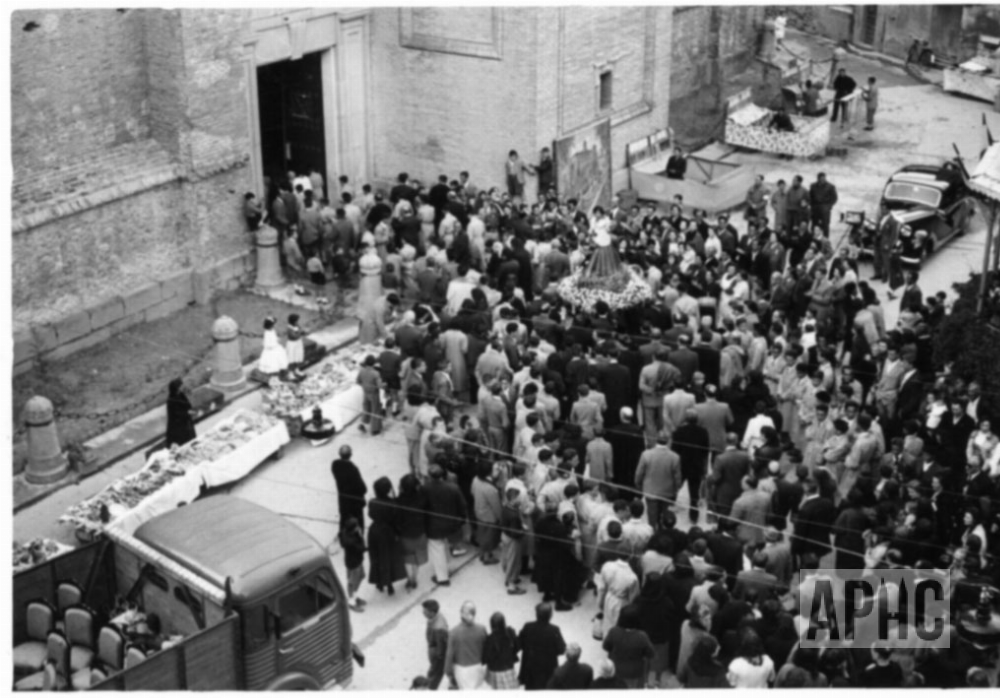 0000-00-00 – La imagen de la Virgen del villar de la comitiva de Zaragoza, entrando en la Parroquia del Rosario.