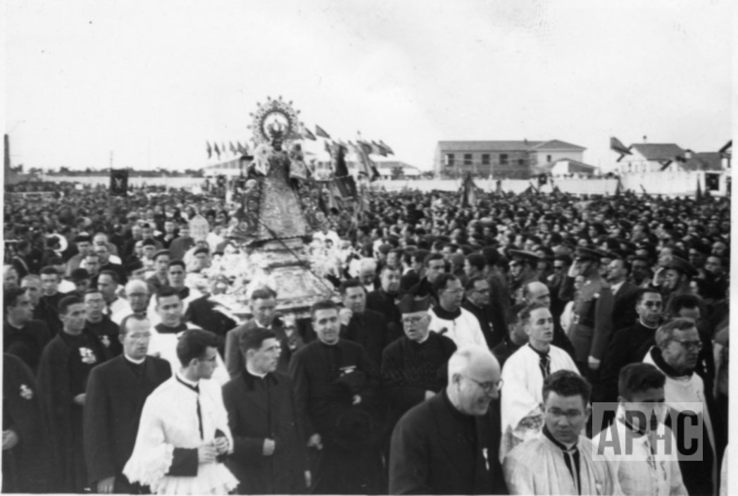 0000-00-00 – La Virgen portada por Concejales del Ayuntamiento corellano, abandona el escenario de la Coronación.