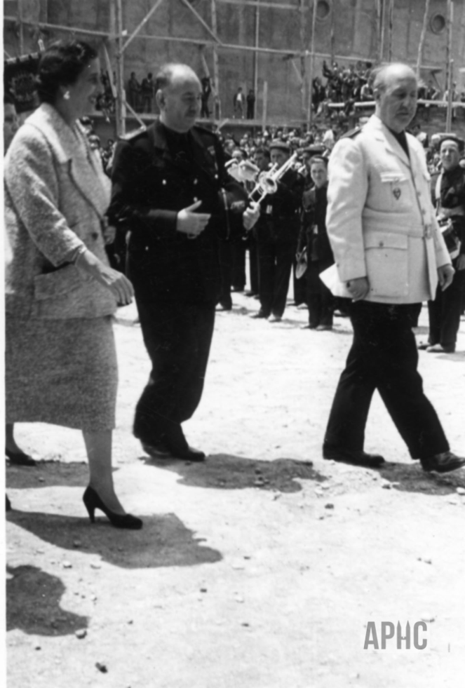 0000-00-00 – Las autoridades en primer término; al fondo se aprecia el avanzado estado de las obras del Cine -Teatro “Blas de Laserna”, que se inauguró en septiembre de ese año.