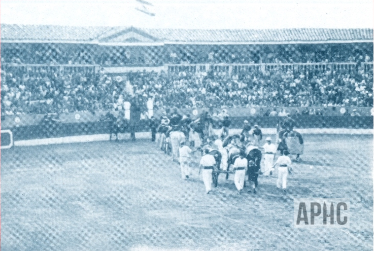 En esta ocasión parece que se trata de un festejo taurino, por la indumentaria de los participantes,