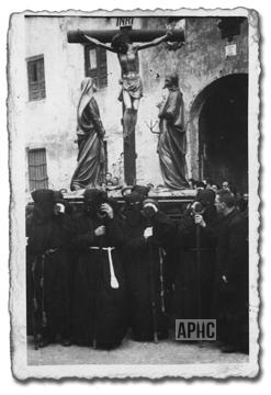 1940-00-00 – Procesión de Viernes Santo. “El Crucificado”, saliendo de la parroquia del Rosario.