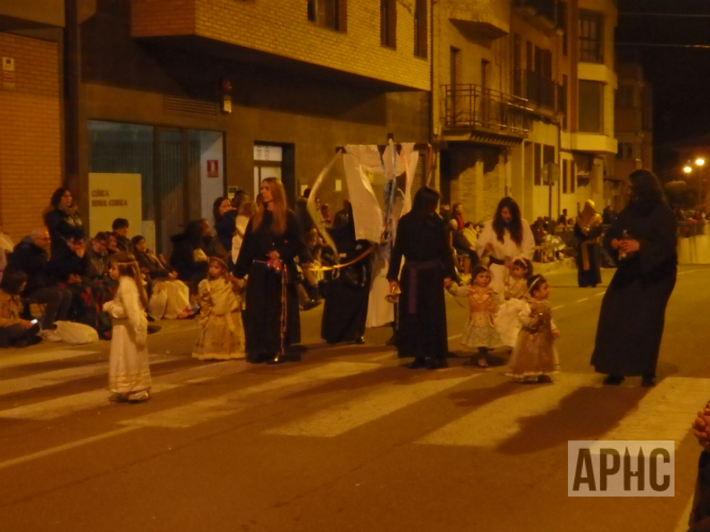 Antiguamente, los angelitos portaban un cáliz del que salía una cinta que se unía a la cruz, portada por un adulto que, solía poner caramelos en los cálices de los angelitos para que les resultase más amena la procesión. Los familiares caminaban en las proximidades para atender cualquier eventualidad de los peques.